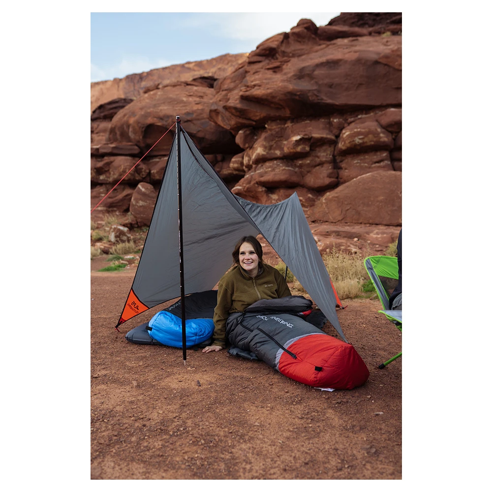 The Ultra-Light Tarp Shelter is the ideal solution for minimalist backpackers looking to shave weight from their packs and simplify camp setup. It is made from 20D nylon ripstop and weighs less than 1 lb. When packed, the tarp takes up less room than a 1-liter water bottle. The 6-point catenary cut design helps provide stability, even in windy conditions, and offers many pitching options. The tarp can easily accommodate two people and gear in lieu of a tent, and is an ideal emergency shelter for day hiking.
