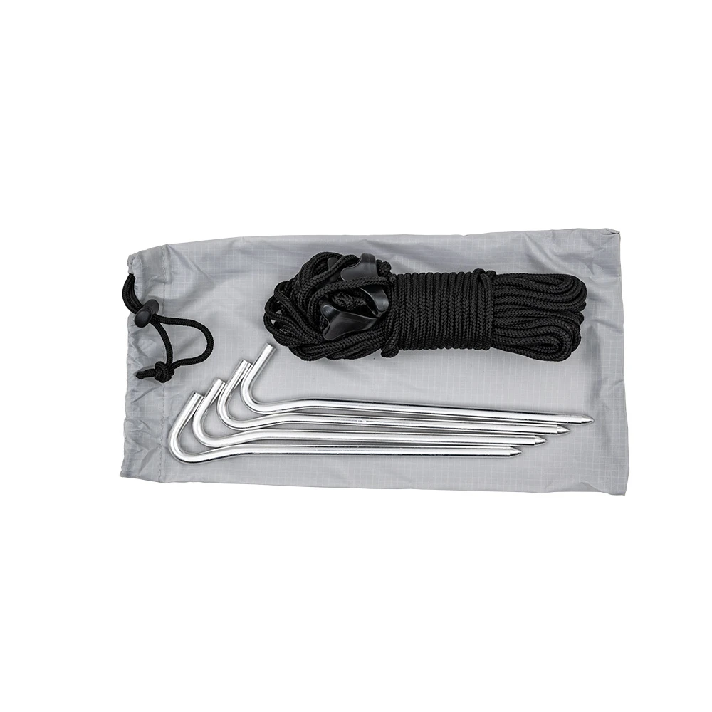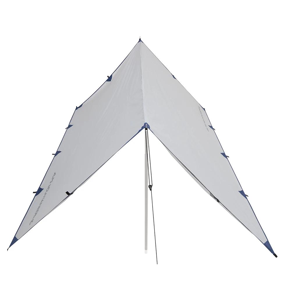 The Utility Tarp has endless possibilities with 16 reinforced guy-out points. You can use it as a primitive shelter or an additional gathering point for a group. The durable 68D polyester ripstop fabric is lightweight and waterproof, weighing just over 1.5 lbs. The light color allows for more ambient light to pass through while still offering protection from the sun. For ultimate versatility, pair with one or more of our Adjustable Tarp Poles.